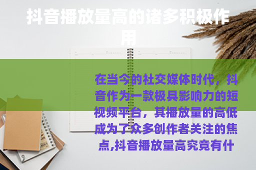 在当今的社交媒体时代,抖音作为一款极具影响力的短视频平台,其播放量的高低成为了众多创作者关注的焦点,抖音播放量高究竟有什么用呢?