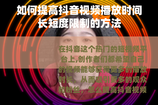 通过以上这些方法的综合运用,相信能够有效地提高抖音视频播放时间长短度限制,让你的视频在抖音上获得更多的关注和喜爱。