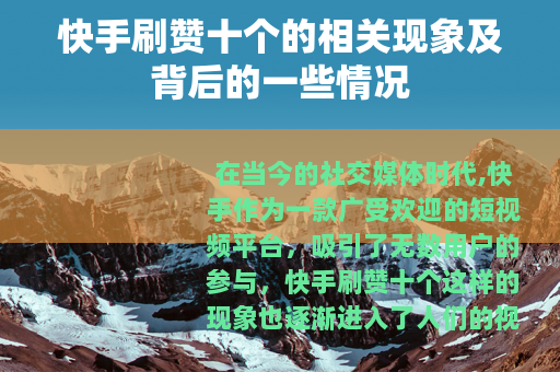 在当今的社交媒体时代,快手作为一款广受欢迎的短视频平台,吸引了无数用户的参与,快手刷赞十个这样的现象也逐渐进入了人们的视野。