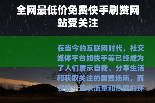 在当今的互联网时代,社交媒体平台如快手等已经成为了人们展示自我、分享生活和获取关注的重要场所,而在这个追求流量和热度的环境下,一种现象逐渐引起了人们的注意,那就是刷赞网站的出现,其中号称全网最低价甚至免费的快手刷赞网站更是备受瞩目。