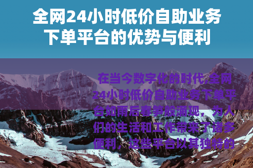 在当今数字化的时代,全网24小时低价自助业务下单平台如雨后春笋般涌现,为人们的生活和工作带来了诸多便利,这些平台以其独特的优势,满足了不同用户群体的多样化需求。