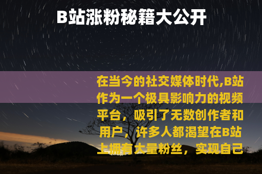 在B站涨粉需要付出努力和时间,不断提升自己的创作能力和运营技巧,通过以上这些方法的综合运用,相信你在B站上的粉丝数量会不断增长,实现自己的创作梦想。