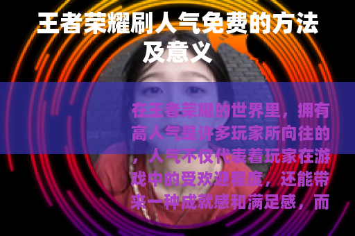 在王者荣耀的世界里,拥有高人气是许多玩家所向往的,人气不仅代表着玩家在游戏中的受欢迎程度,还能带来一种成就感和满足感,而如今,有不少玩家在寻找王者荣耀刷人气免费的途径,这其中也有着一定的趣味性和积极意义。