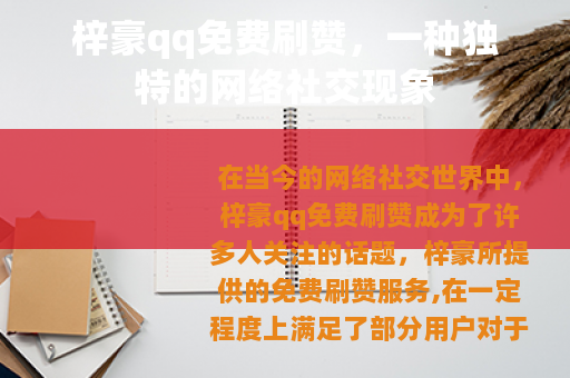 在当今的网络社交世界中,梓豪qq免费刷赞成为了许多人关注的话题,梓豪所提供的免费刷赞服务,在一定程度上满足了部分用户对于社交平台上点赞数量的追求。