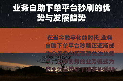在当今数字化的时代,业务自助下单平台秒刷正逐渐成为众多企业和商家关注的焦点,这种创新的业务模式为商业运营带来了诸多便利和机遇,正推动着行业的快速发展。