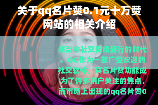 在当今社交网络盛行的时代,QQ作为一款广受欢迎的社交软件,其名片赞功能成为了许多用户关注的焦点,而市场上出现的qq名片赞0.1元十万赞网站也引起了不少人的兴趣。