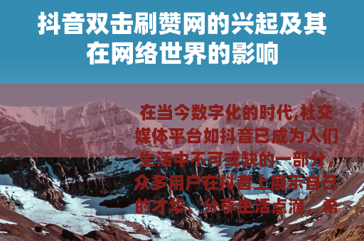 在当今数字化的时代,社交媒体平台如抖音已成为人们生活中不可或缺的一部分,众多用户在抖音上展示自己的才华、分享生活点滴,希望能获得更多的关注和点赞,而抖音双击刷赞网也随之应运而生,在网络世界中掀起了一阵别样的热潮。