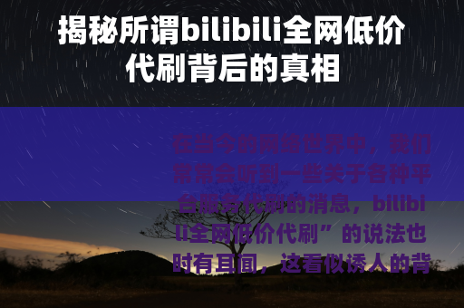 在当今的网络世界中,我们常常会听到一些关于各种平台服务代刷的消息,bilibili全网低价代刷”的说法也时有耳闻,这看似诱人的背后,实则隐藏着诸多不为人知的问题。
