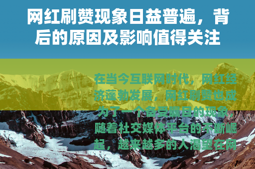 在当今互联网时代,网红经济蓬勃发展,网红刷赞也成为了一个备受瞩目的现象,随着社交媒体平台的不断崛起,越来越多的人渴望在网络世界中获得关注和认可,成为拥有众多粉丝和高点赞量的网红,而网红刷赞,便在这样的背景下应运而生。