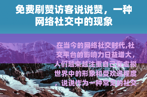 在当今的网络社交时代,社交平台的影响力日益增大,人们越来越注重自己在虚拟世界中的形象和受欢迎程度,说说作为一种常见的社交动态发布形式,其点赞数和访客量往往被视为衡量其受欢迎程度的重要指标,而免费刷赞访客说说赞的现象也随之悄然兴起。