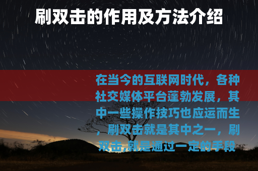 在当今的互联网时代,各种社交媒体平台蓬勃发展,其中一些操作技巧也应运而生,刷双击就是其中之一,刷双击,就是通过一定的手段增加视频或其他内容的点赞数和评论数中的双击量。