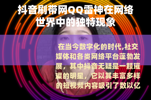 在当今数字化的时代,社交媒体和各类网络平台蓬勃发展,其中抖音无疑是一颗璀璨的明星,它以其丰富多样的短视频内容吸引了数以亿计的用户,成为人们日常生活中不可或缺的一部分,而在抖音的广阔生态中,出现了一种与QQ雷神相关的独特现象,那就是抖音刷带网QQ雷神。