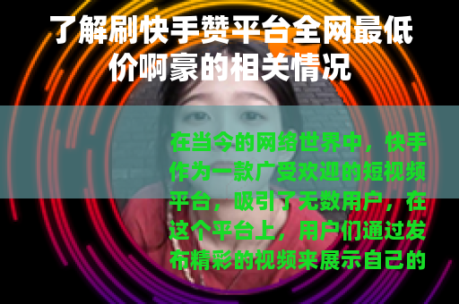 在当今的网络世界中,快手作为一款广受欢迎的短视频平台,吸引了无数用户,在这个平台上,用户们通过发布精彩的视频来展示自己的才华、生活点滴或各种创意内容,希望能够获得更多的关注和点赞,而在这个过程中,出现了一些所谓的刷快手赞平台,其中全网最低价的啊豪平台也引起了不少人的关注。