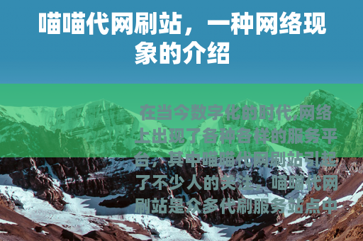 在当今数字化的时代,网络上出现了各种各样的服务平台,其中喵喵代网刷站引起了不少人的关注。