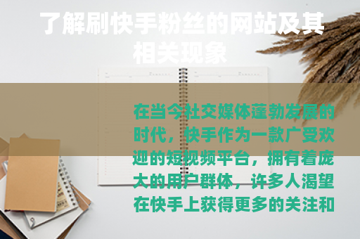 在当今社交媒体蓬勃发展的时代,快手作为一款广受欢迎的短视频平台,拥有着庞大的用户群体,许多人渴望在快手上获得更多的关注和粉丝,以展示自己的才华、分享生活点滴或推广自己的产品与服务,在这种需求的推动下,刷快手粉丝的网站应运而生。