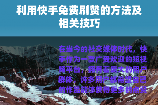 在当今的社交媒体时代,快手作为一款广受欢迎的短视频平台,拥有着庞大的用户群体,许多用户都希望自己的作品能够获得更多的点赞,以此来增加作品的曝光度和影响力,而其中,免费刷赞的话题也备受关注,今天我们就来聊一聊快手免费刷50个赞的一些方法和技巧。