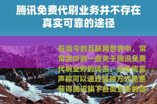 腾讯免费代刷业务是一个看似诱人但实则充满风险和不确定性的概念,我们要保持理性和清醒,不要被这些不实的传言所迷惑,通过合法合规的方式来使用腾讯的各种业务,共同为构建一个健康、和谐的互联网生态贡献自己的力量。