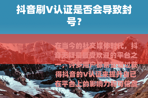 在当今的社交媒体时代,抖音无疑是最受欢迎的平台之一,许多用户都希望通过获得抖音的V认证来提升自己在平台上的影响力和可信度,有一种现象引起了大家的关注,那就是抖音刷V认证,抖音刷V认证会封号吗?
