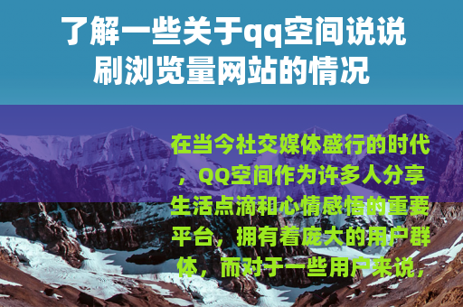 在当今社交媒体盛行的时代,QQ空间作为许多人分享生活点滴和心情感悟的重要平台,拥有着庞大的用户群体,而对于一些用户来说,希望自己发布的说说能有更多的浏览量,以此来获得更多的关注和互动,这时候,qq空间说说刷浏览量网站便应运而生。