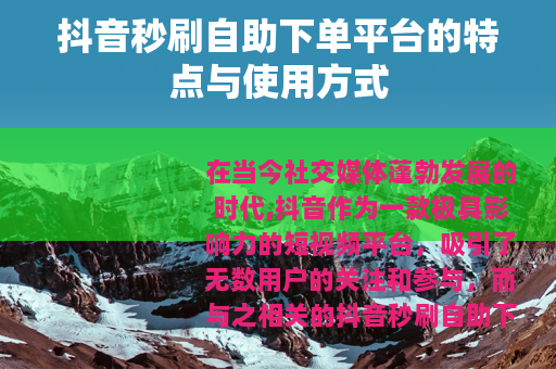 在当今社交媒体蓬勃发展的时代,抖音作为一款极具影响力的短视频平台,吸引了无数用户的关注和参与,而与之相关的抖音秒刷自助下单平台也逐渐进入了人们的视野。