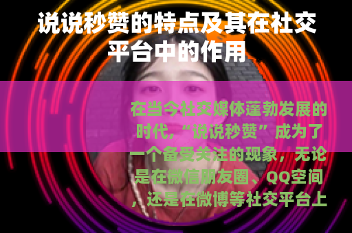 说说秒赞是社交媒体中一个独特而又重要的现象,它在及时性、传播性等方面具有显著的特点,对社交平台和用户个人都有着积极的影响,但我们也要清醒地认识到其中存在的问题,通过合理的引导和规范,让它更好地服务于我们的社交需求,为我们创造一个更加美好的社交体验,我们才能在社交媒体的海洋中,借助说说秒赞的力量,畅游其中,收获更多的快乐和成长。