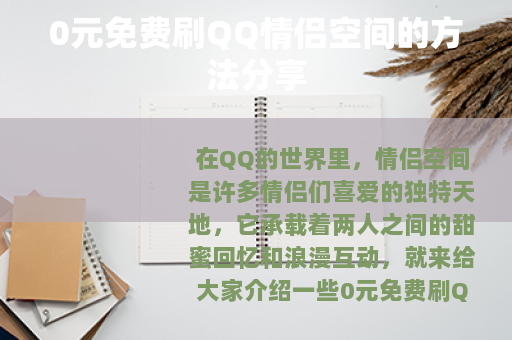 在QQ的世界里,情侣空间是许多情侣们喜爱的独特天地,它承载着两人之间的甜蜜回忆和浪漫互动,就来给大家介绍一些0元免费刷QQ情侣空间的小技巧,让你们的情侣空间更加丰富多彩。