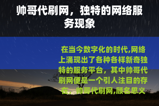 在当今数字化的时代,网络上涌现出了各种各样新奇独特的服务平台,其中帅哥代刷网便是一个引人注目的存在。