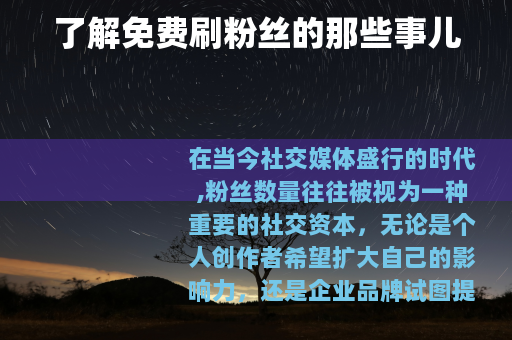 在当今社交媒体盛行的时代,粉丝数量往往被视为一种重要的社交资本,无论是个人创作者希望扩大自己的影响力,还是企业品牌试图提升知名度,拥有大量的粉丝都被看作是成功的一个标志,而“免费刷粉丝”这个话题,也因此受到了不少人的关注。