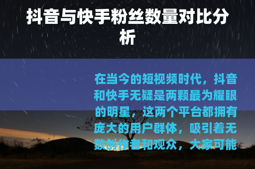 在当今的短视频时代,抖音和快手无疑是两颗最为耀眼的明星,这两个平台都拥有庞大的用户群体,吸引着无数创作者和观众,大家可能会好奇,抖音和快手哪个平台的粉丝多呢?
