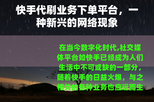 在当今数字化时代,社交媒体平台如快手已经成为人们生活中不可或缺的一部分,随着快手的日益火爆,与之相关的各种业务也应运而生,其中快手代刷业务下单平台逐渐进入了大众的视野。