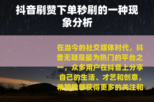 在当今的社交媒体时代,抖音无疑是最为热门的平台之一,众多用户在抖音上分享自己的生活、才艺和创意,希望能够获得更多的关注和点赞,而在这个过程中,出现了一种所谓“抖音刷赞下单秒刷”的现象。