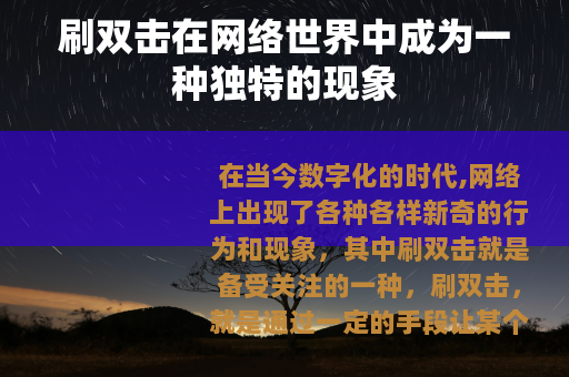 在当今数字化的时代,网络上出现了各种各样新奇的行为和现象,其中刷双击就是备受关注的一种,刷双击,就是通过一定的手段让某个视频、音频或其他数字内容的点赞数和评论数快速增加。