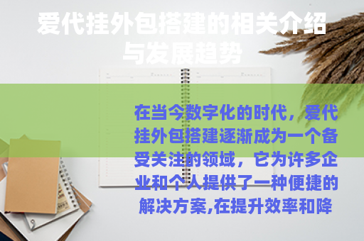 在当今数字化的时代,爱代挂外包搭建逐渐成为一个备受关注的领域,它为许多企业和个人提供了一种便捷的解决方案,在提升效率和降低成本方面具有显著的优势。
