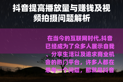在当今的互联网时代,抖音已经成为了众多人展示自我、分享生活以及追求商业机会的热门平台,许多人都在思考一个问题,那就是抖音提高播放量能赚钱吗?这是一个非常值得探讨的话题。