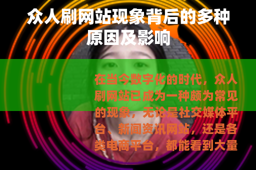 在当今数字化的时代,众人刷网站已成为一种颇为常见的现象,无论是社交媒体平台、新闻资讯网站,还是各类电商平台,都能看到大量用户频繁地刷新网页,试图获取最新的信息、发现新的内容或抓住最佳的机会。