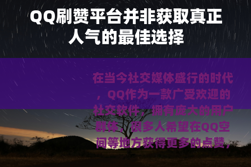 在当今社交媒体盛行的时代,QQ作为一款广受欢迎的社交软件,拥有庞大的用户群体,很多人希望在QQ空间等地方获得更多的点赞,以展示自己的人气和影响力,于是QQ刷赞平台应运而生,我们需要理性看待这些所谓的刷赞平台,明白它们并非是实现目标的理想途径。
