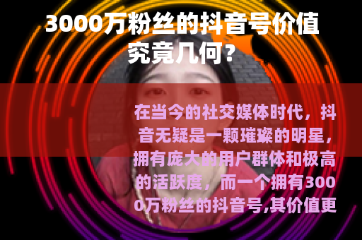 在当今的社交媒体时代,抖音无疑是一颗璀璨的明星,拥有庞大的用户群体和极高的活跃度,而一个拥有3000万粉丝的抖音号,其价值更是备受关注。