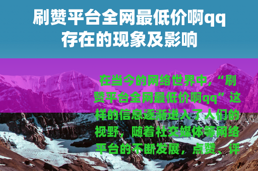 在当今的网络世界中,“刷赞平台全网最低价啊qq”这样的信息逐渐进入了人们的视野,随着社交媒体等网络平台的不断发展,点赞、评论等数据量在一定程度上成为了衡量一个账号或内容受欢迎程度的重要指标,一些刷赞平台便应运而生,它们以低价的优势吸引着众多用户。