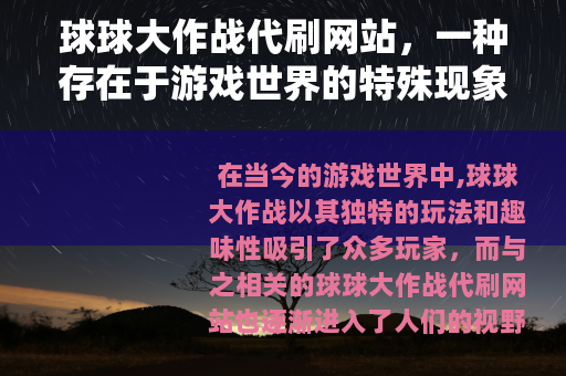 在当今的游戏世界中,球球大作战以其独特的玩法和趣味性吸引了众多玩家,而与之相关的球球大作战代刷网站也逐渐进入了人们的视野。