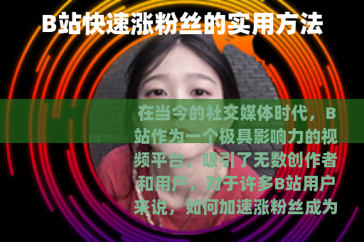 在当今的社交媒体时代,B站作为一个极具影响力的视频平台,吸引了无数创作者和用户,对于许多B站用户来说,如何加速涨粉丝成为了一个备受关注的话题,以下是一些在B站加速涨粉丝的有效方法。 质量是关键,要制作出有吸引力、有价值的视频内容,深入了解自己的目标受众,明确他们的兴趣和需求,然后根据这些来策划和制作视频,如果你的目标受众是游戏爱好者,那么可以制作精彩的游戏攻略、搞笑的游戏实况等内容,确保视频的画面清晰、音频流畅,剪辑精良,这样才能给观众留下好的印象,吸引他们关注你的账号并持续观看你的视频。