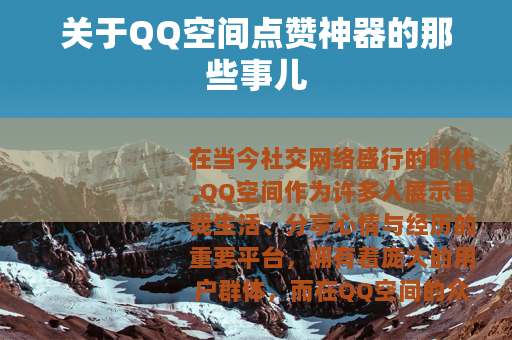 在当今社交网络盛行的时代,QQ空间作为许多人展示自我生活、分享心情与经历的重要平台,拥有着庞大的用户群体,而在QQ空间的众多互动方式中,点赞无疑是一种简单却又能让人感受到被关注和认可的方式,一种名为QQ空间点赞神器的工具应运而生,它在一定程度上满足了部分用户对于点赞数量的追求。