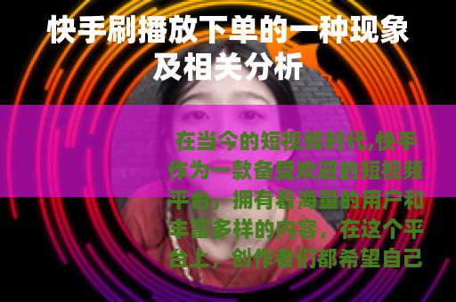 在当今的短视频时代,快手作为一款备受欢迎的短视频平台,拥有着海量的用户和丰富多样的内容,在这个平台上,创作者们都希望自己的作品能够获得更多的关注和播放量,从而提升自己的影响力和收益,而“快手刷播放下单”这种现象也随之悄然兴起。
