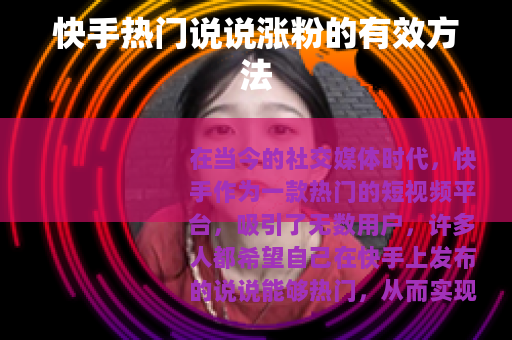 在当今的社交媒体时代,快手作为一款热门的短视频平台,吸引了无数用户,许多人都希望自己在快手上发布的说说能够热门,从而实现涨粉的目标,以下是一些关于快手热门说说涨粉的实用方法。 的独特性是关键,要想在众多的快手用户中脱颖而出,你的说说内容必须要有自己的特色,可以是分享一些有趣的生活经历,比如一次特别的旅行、一次搞笑的聚会等,让用户在阅读你的说说时能够感受到新鲜感和乐趣,也可以是传授一些实用的技能,像美食制作的小窍门、家居清洁的小妙招等,这样能够满足用户的求知欲,增加他们对你的关注。