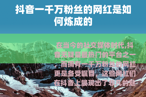 在当今的社交媒体时代,抖音无疑是最热门的平台之一,而拥有一千万粉丝的网红更是备受瞩目,这些网红们在抖音上展现出了非凡的魅力和影响力,吸引着无数人的关注。