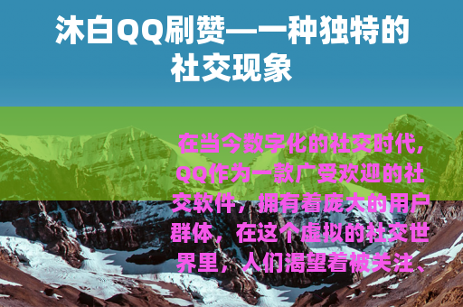 在当今数字化的社交时代,QQ作为一款广受欢迎的社交软件,拥有着庞大的用户群体,在这个虚拟的社交世界里,人们渴望着被关注、被认可,于是各种提升人气和关注度的方式应运而生,其中沐白QQ刷赞便是一种备受关注的现象。