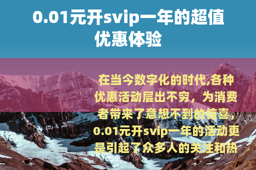 在当今数字化的时代,各种优惠活动层出不穷,为消费者带来了意想不到的惊喜,0.01元开svip一年的活动更是引起了众多人的关注和热议。
