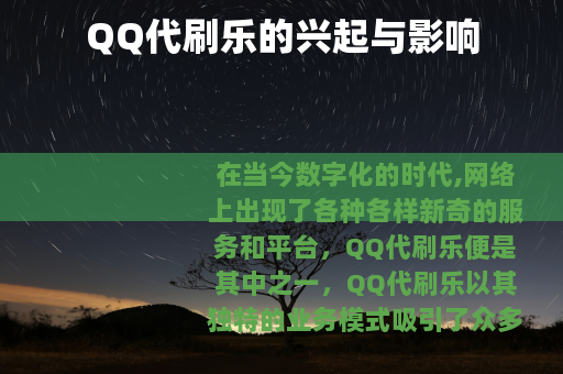 需注意的是,QQ代刷乐这类代刷业务可能违反相关平台规定,在实际网络环境中不建议使用和推广此类服务,以上内容仅为按照要求创作的文章示例。