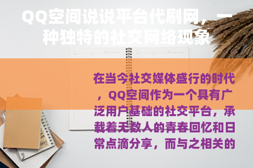 在当今社交媒体盛行的时代,QQ空间作为一个具有广泛用户基础的社交平台,承载着无数人的青春回忆和日常点滴分享,而与之相关的QQ空间说说平台代刷网也悄然兴起,成为了一个值得关注的网络现象。