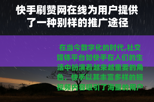 在当今数字化的时代,社交媒体平台如快手在人们的生活中扮演着越来越重要的角色,快手以其丰富多样的短视频内容吸引了海量的用户,而在这个竞争激烈的平台上,获得更多的点赞成为了许多用户追求的目标之一,快手刷赞网在线应运而生,为用户提供了一种新的助力方式。