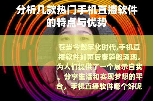 在当今数字化时代,手机直播软件如雨后春笋般涌现,为人们提供了一个展示自我、分享生活和实现梦想的平台,手机直播软件哪个好呢?以下将为您分析几款备受欢迎的手机直播软件的特点与优势。